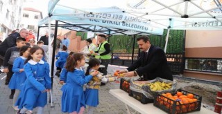Dikili Belediyesi'nden öğrencilere taze meyve ikramı