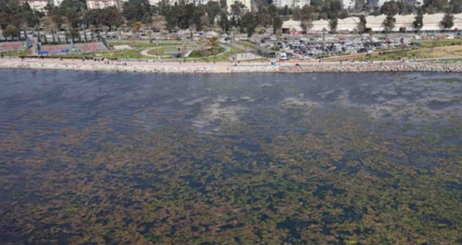 İzmir Körfezi'nin Karşıyaka ilçesi Bostanlı sahilinde kıyıya yakın bazı noktalarda, deniz suyundaki azot ve fosfor miktarının artmasıyla çoğalan deniz yosunu (ulva) su üzerinde tabaka oluşturdu.