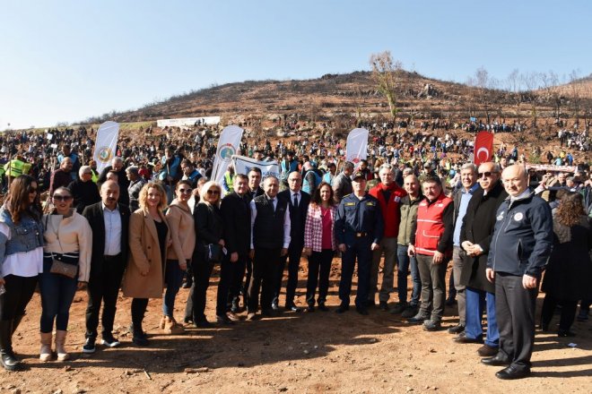 Karşıyaka Kaymakamlığı'nın düzenlediği Dünya Karşıyakalılar Günü’nde İzmir Orman Bölge Müdürlüğü tarafından sağlanan 4 bine yakın fidan, geçtiğimiz yaz Sancaklı’daki yanan orman alanına dikildi.