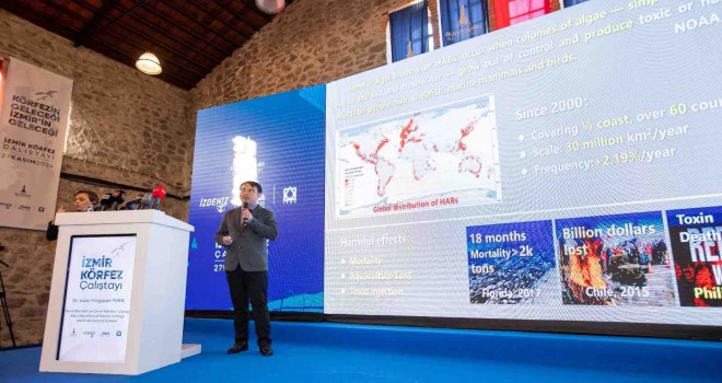 İzmir Körfezi, son yıllarda artan sıcaklıklarla birlikte yaz aylarında sıklıkla zararlı alg patlamalarına sahne oluyor. Deniz yüzeyini kaplayan bu mikroskobik canlılar, suyun rengini değiştiriyor, oksijeni tüketiyor, toksin salarak balık ölümlerine ve kötü kokuya yol açıyor. İzmir Büyükşehir Belediyesi, çözüm arayışlarının merkezine ise modifiye kil yöntemini oturttu. UNESCO’nun önerisi ile Körfez Çalıştayı kapsamında İzmir’e gelen ve modifiye kil uygulaması hakkında sunum yapan Çin Bilimler Akademisi’nden Dr. Isaac Yuan, bu yönteme ilişkin bilimsel verileri ve merak edilen konuları video konferansla yanıtladı. Yuan, ‘Bu bir doğa müdahalesi değil, doğayı koruma refleksi’ dedi.