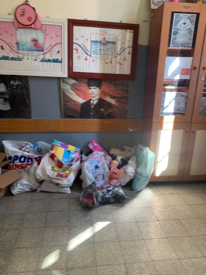 Çandarlı Cumhuriyet İlkokulu 1/A Sınıf Öğretmeni Sevilay Bozkurt ve öğrencileri özenle hazırladıkları oyuncak, kitap ve kırtasiye malzemelerini Osmaniye Tasarım Beceri Atölyesi aracılığı ile deprem bölgesindeki kardeşlerine gönderdiler.
