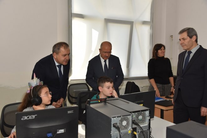 Karşıyaka Kaymakamı Özkan Demir beraberinde İlçe Milli Eğitim Müdürü Kadir Kadıoğlu ve İlçe Milli Eğitim Şube Müdürü Nalan Kumray Cin ile birlikte BİLSEM’e giderek öğrencilerle bir araya geldi. Kaymakam Demir ve İlçe Milli Eğitim Müdürü Kadıoğlu bilgisayarda Robotik Kodlama ile oyunlar üreten öğrencilerden yaptıkları çalışmalar hakkında bilgi aldı, onlarla sohbet etti. Piyano çalan öğrencileri dinledi.