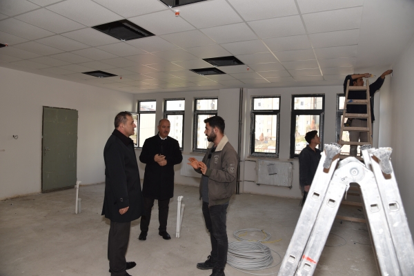 Karşıyaka Kaymakamı Özkan Demir beraberinde İlçe Milli Eğitim Müdürü Kadir Kadıoğlu ile birlikte Karşıyaka Mustafa Kemal Paşa Mahallesi’nde 10.069 metre karelik alanda yapımı devam eden 24 derslikli Karşıyaka Spor Lisesi inşaatında incelemelerde bulundu.