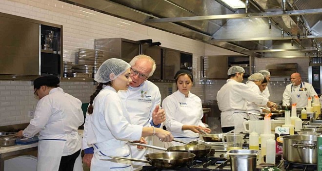 Ege İhracatçı Birlikleri’nce ABD’ye gıda ihracatını artırmak için 5 yıldır başarıyla sürdürülen Turkish Tastes isimli TURQUALITY Projesi kapsamında Amerikalı şefler Reimund Pitz ve Jay Marshall, Türkiye’de lezzet noktalarını ziyaret etti, Yaşar Üniversitesi Gastronomi Bölümü öğrencileriyle muftağa girdi.