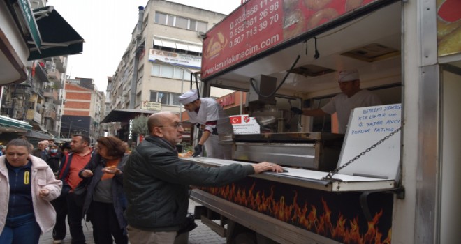 Küçük Avcı Kahve’nin sahibi Osman Avcı, oğulları Oğuzcan ve Oğulkan ile Karşıyaka Mustafa Kemal Paşa camiisi önünde kurulan araçta döktürdüğü lokmayı gelenlere dağıttılar.