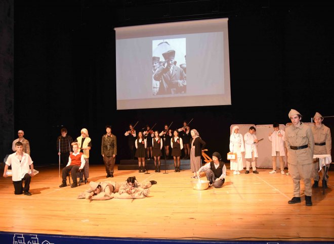 Atakent Anadolu Lisesinin hazırladığı programda öğrenciler tarafından savaş anıları canlandırılırken duygulu anlar yaşandı.