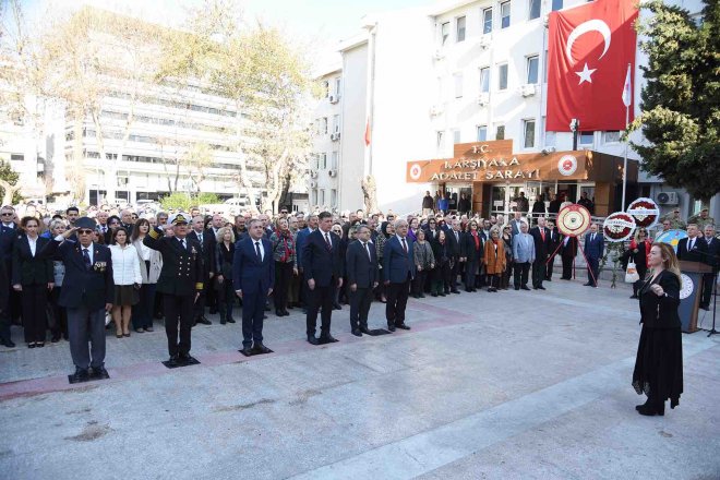 Karşıyaka Hükümet Konağı Bahçesindeki Atatürk Anıtı’na çelenk bırakma, saygı duruşu ve İstiklal Marşı’nın okunması ile başlayan anma günü etkinlikleri, Karşıyaka Belediyesi Deniz Baykal Kültür Merkezi’nde düzenlenen etkinlikler ile devam etti.