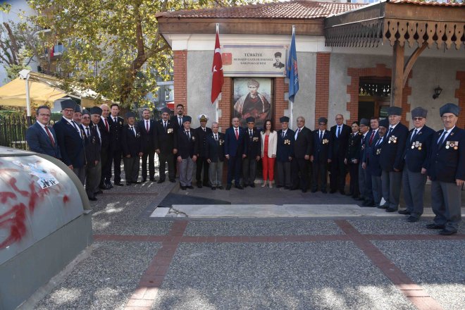 Tören sonrasında Karşıyaka Kaymakamı Özkan Demir, Ege Deniz Bölge Komutan Vekili Mühendis Albay Reşat Yıldırım Ünal, Karşıyaka Belediye Başkanı Yıldız Ünsal, Kamu kurum yöneticileri ve Muhtarlar Derneği Karşıyaka Şube Başkanı Coşkun Zenginer ile birlikte Gaziler Derneğine giderek Gaziler Derneği Başkanı Halil Taşçı ve gazilerin bayramını kutladı, bir süre sohbet etti.