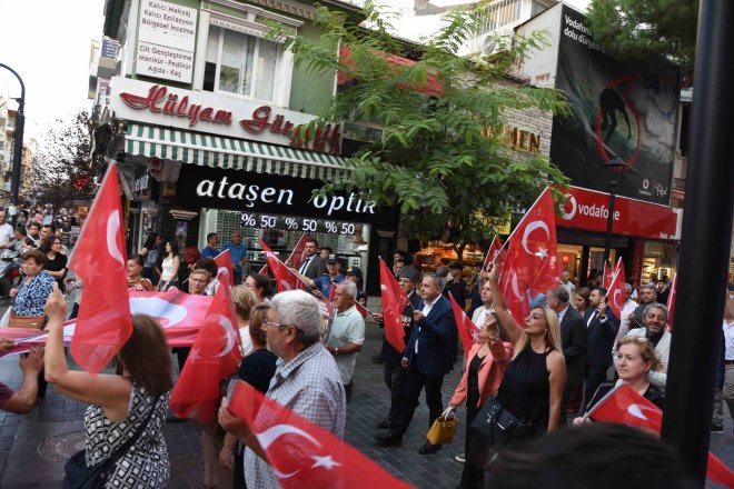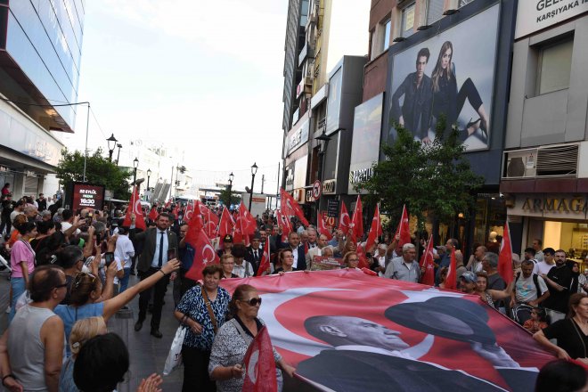 Karşıyaka Kaymakamı Özkan Demir, Karşıyaka Belediye Başkan vekili Berkhan Alptekin, Türkiye Muharip Gaziler Derneği Karşıyaka Şube Başkanı Halil Taşçı, Aile Ve Sosyal Hizmetler Müdürü Melih Keleş, İlçe Milli Eğitim Müdürü Serdal Şimşek, İlçe Emniyet Müdürü Ercan Kaçanoğlu, İlçe Jandarma Komutanı Büşra Koçak, İzmir Büyükşehir Belediyesi Şehit Yakınları ve Gaziler Koordinatörü Doktor Emekli Albay Fatih Özkurt, İzmir Büyükşehir Belediyesi Şehit Yakınları ve Gaziler Şube Müdürü Serhat Yavuz, İl Gençlik Faaliyetleri Şube Müdürü Mehmet Ersoy, Gençlik Merkezi Müdürü Salim Birol, KAÇOK Dernek Başkanı Aslı Sarı, İzmir Kıbrıs Konsolosu Alp Buğra Gültekin, İYİ Parti Karşıyaka İlçe Başkanı Yetkin Hafızoğlu, STK lerin yönetici ve temsilcileri ile Karşıyakalılar Karşıyaka Belediyesi Bandosu eşliğinde gazilerle birlikte Karşıyaka Vapur İskelesi önünden dernek binasına kadar kortej yürüyüşü yaptı.