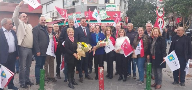 İYİ Parti Karşıyaka İlçe Başkanlığında kendisi için düzenlenen kutlama törenine katılım sağlayan Yetkin Hafızoğlu, yönetim kurulu üyeleri, Kadın ve Gençlik Politikaları ile birlikte kutlamadan sonra Karşıyaka Çarşı'da esnafı dolaştı.