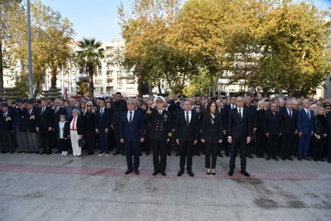 Çelenk koyma törenine Törene Karşıyaka Kaymakamı Özkan Demir, Ege Deniz Bölge Komutanı Deniz Kıdemli Albay Tamay Durğun, Karşıyaka Belediye Başkanı Yıldız Ünsal, Karşıyaka Cumhuriyet Başsavcısı Halil Sezgin, Adalet Komisyonu Başkanı Mehmet Özcan, İlçe Milli Eğitim Müdürü Serdal Şimşek, Kamu kurum yöneticileri, CHP İlçe Başkanı Levent Güçlü, AK Parti İlçe Başkanı Selahattin Köse, MHP İlçe Başkanı Akif Yılmaz, İyi Parti İlçe Başkanı Yetkin Hafızoğlu, Siyasi Partilerin, STK’ların başkan ve temsilcileri, gaziler, muhtarlar, okul müdürleri, öğretmenler, öğrenciler ve çok sayıda Karşıyakalı katıldı.