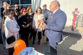 Karşıyaka Kaymakamı Özkan Demir, İlçe Emniyet Müdürü Ercan Kaçanoğlu, Sosyal Hizmetler Müdürü Müge Hanay Unveren, İlçe Jandarma Komutan Vekili Cesur Yiğit, Muhtarlar Derneği Karşıyaka Şube Başkanı Coşkun Zenginer, muhtarlar, ilçe Emniyet Müdürlüğü, Sosyal Hizmetler ve Jandarma Komutanlığı personelinin Karşıyaka İZBAN Durağında katıldığı etkinlikte “Kadına Yönelik Şiddete Karşı” vatandaşlara aydınlatıcı broşürler dağıtıldı.