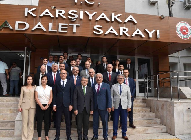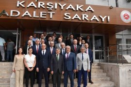 Başsavcı San’ın ayrılması, Başsavcı Sezgin’in göreve başlaması nedeniyle Karşıyaka Adliye Sarayında bir program düzenlendi.