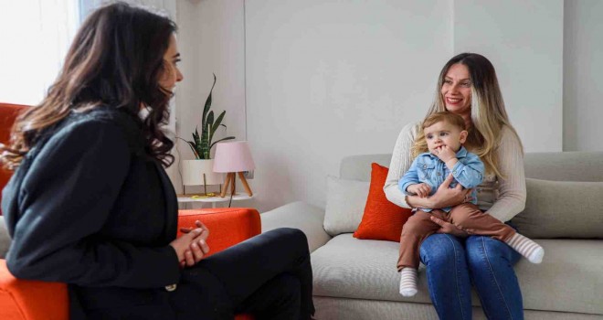 Proje, Boğaziçi Üniversitesi, Psikoloji Araştırma ve Uygulama Merkezinde eğitim alan uzman personel tarafından uygulanıyor. Ev Ziyareti Temelli Aile Rehberliği uygulamasından 0-12 aylık bebek sahibi olan ve Karşıyaka’da yaşayan tüm ebeveynler yararlanabiliyor. Projeye başvuran annelere, hamileliğin 7. ayından itibaren ayda bir kez, doğumdan sonra da iki haftada bir kez ev ziyaretleri gerçekleştiriliyor. Ziyaretler, bebeğin sağlıklı büyümesi için gerekli bilgilendirmeler; gelişim evreleri, uygulamalı bebek masajı, ek gıdaya geçen bebeğin dengeli beslenmesinin önemi ve nasıl olabileceği konularını içeriyor. Bu süreçte annenin duygu durumu konuşularak destekleniyor. Gelişimi destekleyici oyunlar tanıtılıp, maliyeti olmayan geri dönüşüm malzemelerinden oluşan oyuncaklar ile yapılabileceğine de dikkat çekerek, bebek ve aile ile birlikte etkinlikler yapılıyor. Bebeğin iletişim, hareket, problem çözme ve sosyal gelişim alanlarındaki kazanımları ailenin evinde gözlemleniyor. Bu sonuçlar değerlendirilerek kayıt altına alınıyor. Rehberler tarafından ailelere; bebeklerde uyku, beslenme, ev kazaları ekran zamanı, tuvalet eğitimi, güvenli oyun kurma, destekleyici bakım veren ve bağlanma, disiplin ve sınır koyma konularında eğitimler de veriliyor.