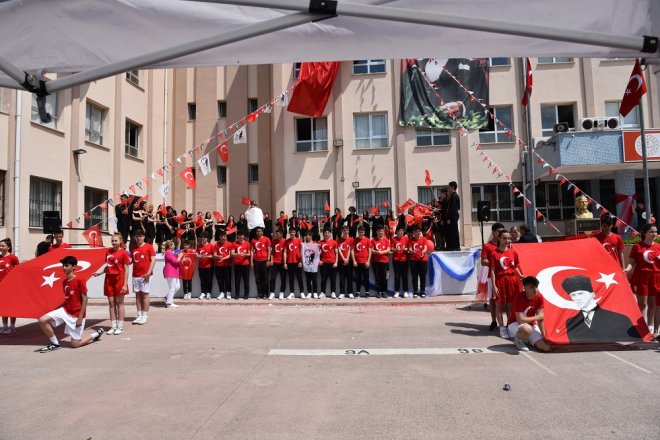 Buradaki törende Saygı Duruşu ve İstiklal Marşı’nın ardından günün anlam ve önemi üzerine Gençlik Hizmetleri ve Spor İlçe Müdürü Musa Yelek ve okul müdürü Burcu Muslu tarafından birer konuşma yapıldı, öğrenciler şiirler okudu.