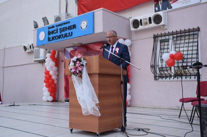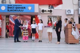 Daha sonra Karşıyaka İlçe Milli Eğitim Müdürlüğü tarafından hazırlanan törenle İnci Şener ilkokulunda öğrenciler çeşitli gösterilerde bulundu ve bayramlarını coşkuyla kutlandılar. Buradaki törene Karşıyaka Kaymakamı Özkan Demir de hazır bulundu ve başarılı öğrencilere ödüllerini verdi.