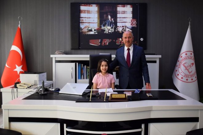 23 Nisan Ulusal Egemenlik ve Çocuk Bayramı kapsamında temsili olarak Karşıyaka Mirza Nil İlkokulu öğrencisi, Nazende Gürkan makamı devraldı. Nazende Gürkan, Karşıyaka İlçe Milli Eğitim Müdürü Kadir Kadıoğlu ve yetkililerle eğitimle ilgili beklentilerini dile getirdi , 23 Nisan Ulusal Egemenlik ve Çocuk Bayramını kutladı.