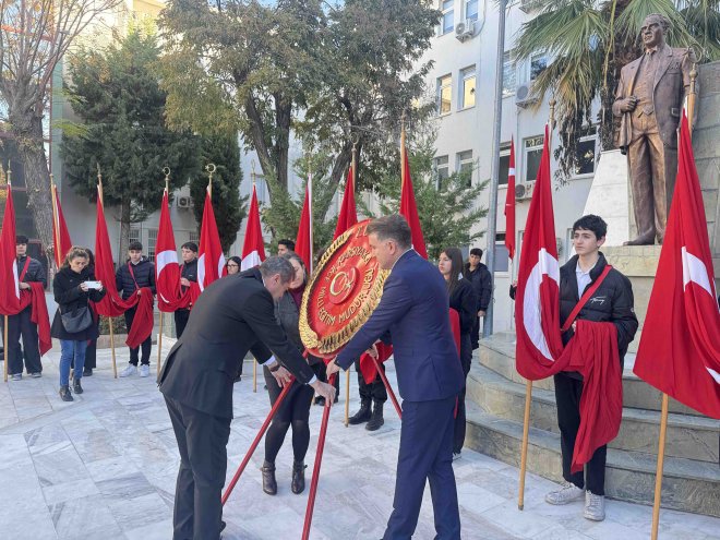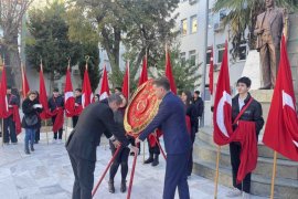 İlçe Milli Eğitim Müdürü Serdal Şimşek Atatürk Anıtına çelenk sunumundan sonra saygı duruşu yapıldı, İstiklal Marşı okundu.