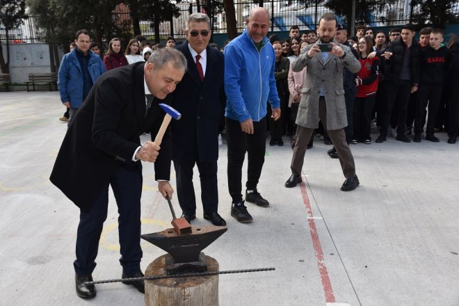 Karşıyaka Belediyesi bandosu eşliğinde saygı duruşu ve İstiklal Marşı’nın okunmasından sonra açılış konuşmasını okulun müdür yardımcısı Barış Bakırlı yaptı. Bakırlı Nevruz Bayramı’nı Türkler tarafından tarih boyunca birlik, beraberlik ve dayanışma için kutlandığını söyledi.