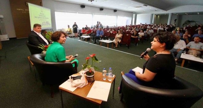 Karşıyaka’nın Gıda Vizyonuna Doğru Yol Haritası başlıklı bir sunum yapan İzmir Demokrasi Üniversitesi’nden Doç. Dr. Emel Karakaya Ayalp ise “Karşıyaka’da bütüncül bir yaklaşım var, bu yaklaşım; bir kent bölge gıda sisteminin üretilmesi, üretici ile tüketicinin, dağıtım sisteminin bir araya getirilmesi ve bütün bu olanakların bir arada tutulması. Biz her şeyi merkezileştiriyoruz, hiçbir şeyi kendi yerelinin bilgisini tutmadan, merkezden yürütmeye çalışıyoruz ve tektipleştirip, modelleştiriyoruz. Hiçbir yerelin ihtiyacını karşılayamayacak modeller üretiyoruz. Biyoçeşitlilikte gördüğümüz şey, bizim insan olarak gıdaya yaklaşımımızı çok iyi anlatıyor çünkü her şeye böyle yaklaşıyoruz. Bir tane tür olsun biz onu yiyelim onu tüketelim, bir tane tarım gıda sistemi olsun onu yapalım. Peki yerel yönetimler bunun karşısına geçmek için ne yapabilirler. Gıda bizim, müştereğimiz. Müşterek; herkese ait olan ve kimseye ait olmayandır. Bizim insan olarak gıdaya erişim hakkımız olmalı, güvenilir gıdaya erişebilmeliyiz, gıda yurttaşlığını gerçekleştirebilmeliyiz, gıda egemenliğine sahip olmalıyız. Gıda sistemi yaklaşımı, bize tanımlanan idari sınırlarda yetersiz kalıyor, bizim bir kent bölge gıda sistemi tanımlamamız lazım. Burada doğrudan örgütlenme meselesi devreye giriyor aslında bölgesel bağlantıları kurabilmek için bunu mümkün kılan şeylerden biri de gıda. Karşıyaka’nın gıda sistemi dediğimizde; sadece bir tüketici kitlesi görüyor olabiliriz ama bölge ile beraber ele alındığında burada bir üretim ve üretici meselesi var. Buradaki yol haritasına baktığımızda karşımıza; kentsel gıda stratejisi, kentsel gıda konseyi gibi yeni oluşumlar çıkıyor, bunların Türkiye’deki uygulaması çok kısıtlı gerçekleşti. Aslında burada merkeze oturması gereken şey; bir kentin gıda stratejisinin ya da vizyonun çalışabilmesi için halkın ona sahip çıkması gerekiyor. Dolayısıyla önce kentin mevcudunu anladıktan sonra katılımcı yöntemlerin tasarlanması lazım. Şimdi Karşıyaka’nın mevcuduna değinmek istiyorum; atıl alan envanteri çıkarılmış, atıl alanlar var ve bir ekosistem çalışması yapılmış, vizyon ekibinin çalışmaları ile beraber aslında bunlar bütüncül bir gıda sisteminin olanaklarını üretmek için bir yapıya oturuyor. Katılımcı yöntemler tasarlanıp, katılımın üretilmesinden sonra Karşıyaka’nın özellikle tüketici merkezli kent kimliğinden ötürü öncelikli olarak kısaltmış gıda tedarik zinciri stratejisi ve eylemlerinin üretilmesi, sonrada bütünleşik hedefler ve vizyon strateji belgesine dönüşmesinin mümkün olduğunu düşünüyorum” dedi.