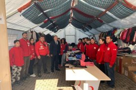 Türk Kızılay Karşıyaka Şube Başkanlığı'nın Şehit İlhan Varank İmam Hatip Anadolu Lisesi'nde bulunan İnsani Yardım Çadırını ziyaret eden Karşıyaka Kaymakamı Özkan Demir, burada Türk Kızılay Karşıyaka Şube Başkanı Kamil Karadeniz ile görüştü ve İzmir’e gelen depremzede aileler için hazırlıkları inceledi.