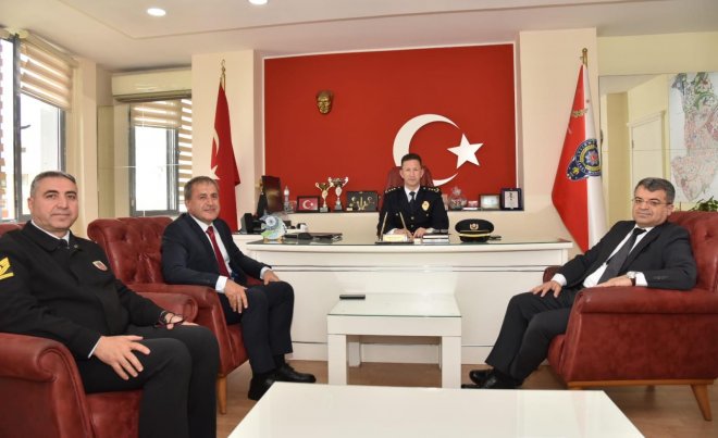 Türk Polis Teşkilatı'nın kuruluşunun 178'inci yıl dönümü ve Polis Haftası nedeniyle Karşıyaka Kaymakamı Özkan Demir, Karşıyaka Cumhuriyet Başsavcısı Ali Rıza San ve İlçe Jandarma Komutanı Ahmet Karaman ile birlikte İlçe Emniyet Müdürlüğünü ziyaret ederek, İlçe Emniyet Müdürü Ercan Kaçanoğlu ve görevli emniyet mensuplarının Polis Haftasını kutladı.