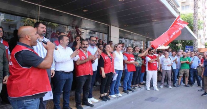 Basın açıklaması okuyan Genel-İş Sendikası İzmir 8 No’lu Şube Başkanı Deniz Şahin Gümüştekin, “Artık buradan işçilerin ne kadar zor durumda olduğunu, borçlarının ödeyemediğini, icralık olduğunu ve tefecilerden borç aldığını anlatmayacağız. Sayın belediye yetkilileri, buradaki işçilerin Karşıyaka Belediyesi işçileri olduğunu unutmayın ve maaş alacaklarını ödeyin. Artık yeter” diye konuştu.