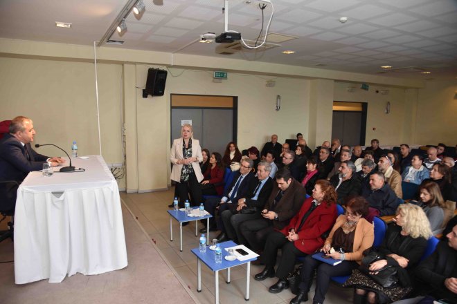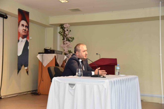 Karşıyaka Kaymakamı Özkan Demir, Karşıyaka’daki kurum yöneticileri ile birlikte Karşıyaka Suzan Divrik Anadolu Meslek Lisesi’nde Karşıyaka’daki muhtarlarla bir araya geldi.