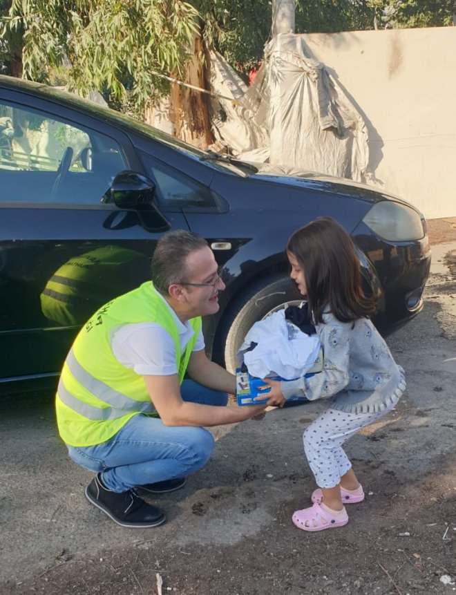 Karşıyaka Mavişehir Mahallesi Muhtar Vekil Ali Çağdaş Baray yardımseverlerden topladığı oyuncak ve giysileri ihtiyaç sahibi çocuklara dağıtıyor.
