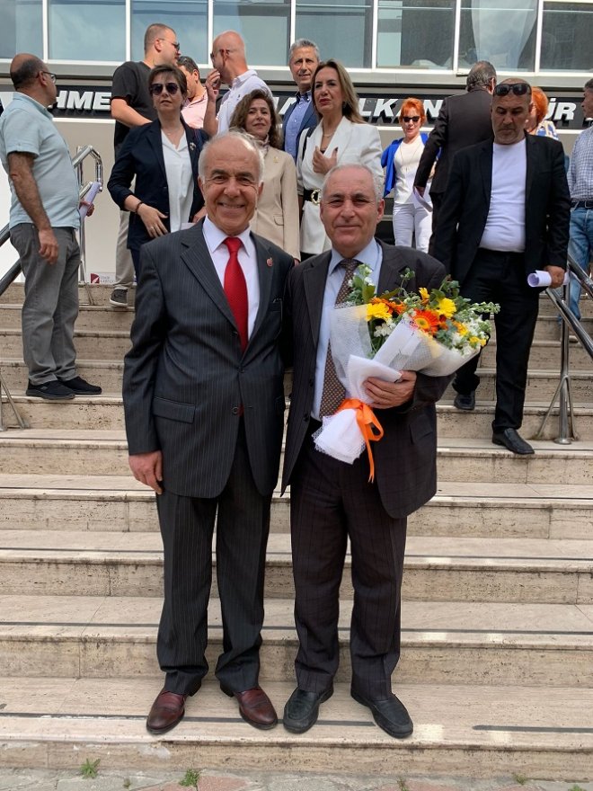 Karşıyaka ‘da muhtarlar yerel seçim öncesi ve sonrası seçim iş ve işlemlerinde başarılı çalışmalar yapan ilçe seçim kuruluna giderek teşekkür etti, Başkan Mehmet Çelik’e bir buket çiçek verdi.