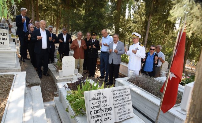Şehit mezarlıklarını ziyarete Karşıyaka Kaymakamı Özkan Demir, Ege Deniz Bölge Komutanı Deniz Kıdemli Albay Tamay Durğun, Karşıyaka Cumhuriyet Başsavcısı Halil Sezgin, İlçe Müftüsü Hayri Cihangeri, İlçe Jandarma Komutanı Büşra Koçak, İlçe Milli Eğitim Müdürü Arzu Günaydın, İlçe Emniyet Müdürü Ercan Kaçanoğlu, İlçe Nüfus Müdürü Ertuğrul Öcek, İlçe Sağlık Müdürü Dr. Şamil Buğa, Sosyal Hizmetler Müdürü Servet Çekiç, Sosyal Yardımlaşma Vakfı Müdürü Bora Kaya, İlçe Tarım Müdürü Özgür Tağızade, AK Parti İlçe Başkanı Selahattin Köse, MHP İlçe Başkan yardımcısı Erdoğan Karaboğa ve Örnekköy Mahalle Muhtarı Avni Yüksel, okul müdürleri, imamlar, kamu kurum yöneticileri katıldı.