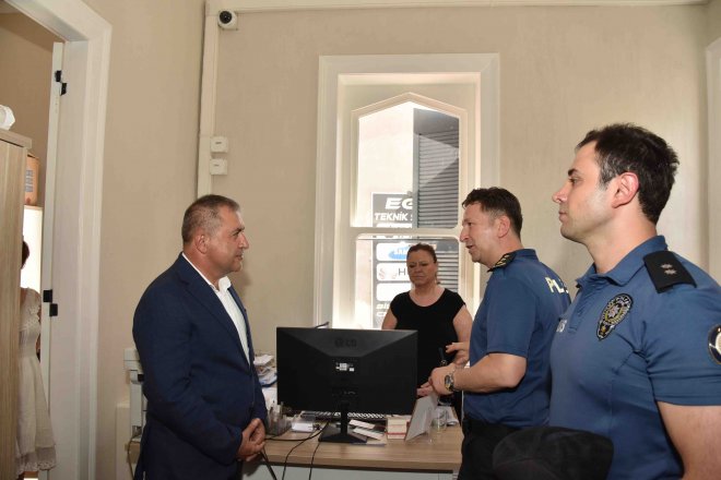 Karşıyaka Kaymakamı Özkan Demir Çarşı Polis Merkez Amirliği’ni ziyaret ederek, İlçe Emniyet Müdürü Ercan Kaçanoğlu, Merkez Amiri Dinçer Karaman ve görevli personel ile bir süre sohbet etti, bina hakkında bilgi aldı. Kaymakam Demir, vatandaşımızın huzur ve esenliği için görevimizin başındayız dedi, merkezin hayırlı olmasını diledi.