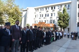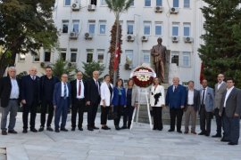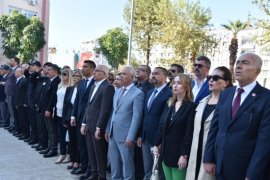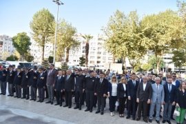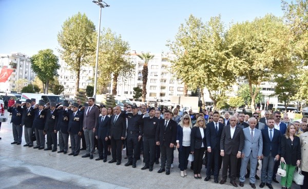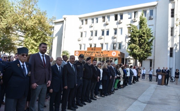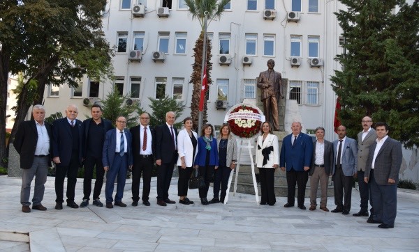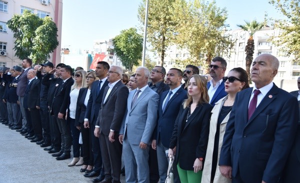 19 Ekim Muhtarlar Günü dolayısıyla Karşıyaka Hükümet Konağı bahçesinde gerçekleştirilen törende, Atatürk Anıtına çelenk bırakıldı, saygı duruşundan sonra istiklal marşı okundu.