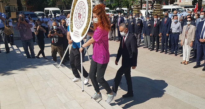 Karşıyaka'daki törene Karşıyaka Gençlik ve Spor İlçe Müdürü Musa Yelek ev sahipliği yaptı ve Karşıyaka Kaymakamlığı önündeki Atatürk Anıtına çelenk bıraktı. Törene Karşıyaka Belediye Başkanı Dr. cemil Tugay eşiyle birlikte katıldı. Katılımcılar arasında resmi daire müdürleri, Karşıyaka protokolü, Siyasi Parti İlçe Başkan ve yöneticileri ile STK temsilcileri yer aldı. .