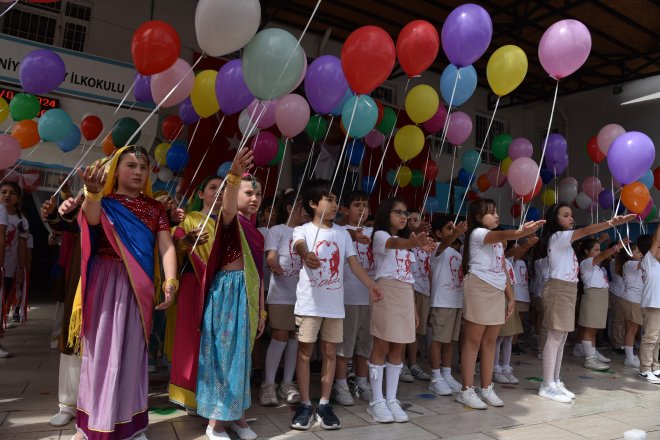 5 yaş gurubu ile Hint danslarından oluşan oyun sık sık alkışlandı. Öğrencilerle birlikte balonlar uçuruldu. Kızılay Karşıyaka Şubesi Başkanı Kamil Karadeniz tarafından çocuklara çeşitli hediyeler verildi. Törene katılanlar okuldaki sergiyi gezdi. Protokoldekilerin sergide öğrencilerle bire bir ilgilenmeleri dikkat çekti.