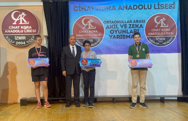 Cihat Kora Anadolu Lisesinde düzenlenen ortaokullar arası akıl ve zekâ oyunları yarışmasında kazananlara ödülleri verildi.
