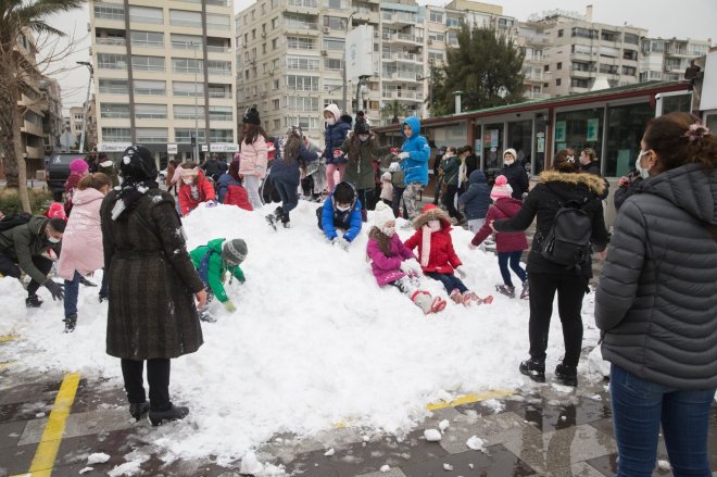 Bu konuda Karşıyaka Belediye Başkanı Dr. Cemil Tugay, sosyal medyadan bu olayı şöyle duyurdu: "Alaybey’li çocuklarımızın ricası üzerine Spil Dağı'ndan getirttiğimiz karları Alaybey Tersane Cafe önünde çocuklarımızla buluşturduk. Deniz kıyısında kar keyfi yapan çocuklarımızın mutluluğu görülmeye değerdi."