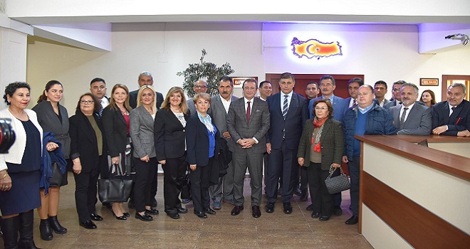 Kaymakam Ali Rıza Çalışır ile bir süre sohbet eden Başkan Dr. Cemil Tugay ve Karşıyaka Belediye Meclisi üyeleri anı fotoğrafı çektirdi.