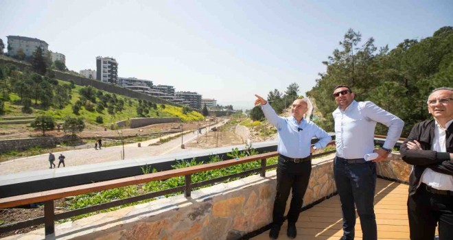 İzmir Büyükşehir Belediye Başkanı Tunç Soyer, kentte kişi başına düşen yeşil alan miktarını artırmak için adaylığı döneminde duyurduğu projelerden biri olan Portakal Vadisi’ni ziyaret etti. Buca’nın Tınaztepe Mahallesi’nde Kültürpark’ın yarısı büyüklüğündeki 200 bin metrekarelik alan İzmirliler için yeni bir nefes alma noktası oldu. Portakal Vadisi’nin 100 milyon liralık yatırımla hayata geçtiğini ifade eden Başkan Tunç Soyer, “En geç bir ay içerisinde Portakal Vadisi İzmirlilerin kullanımına açılacak. Binlerce ağaç, çalı, bitkisel örtü ile Bucalıların nefes alacağı bir alana dönüştürüldü. Seyir terasları, kafeteryalar, şarküteri, restoran gibi birçok sosyal donatı alanları da eklendi. Tınaztepe Kampusu’nün arka kapısıyla bitişik Portakal Vadisi en çok üniversite öğrencileri için cazibe merkezi olacak. Bir projenin daha sonuna geldik, emek veren tüm arkadaşlarımıza teşekkür ediyorum” dedi.
