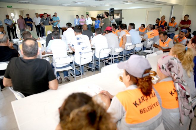 İşçilerin en çok şikayet ettiği konu olan düşük maaşları yükseltmeye hazır olduğunu vurgulayan Tugay “Aldığınız ücretlerin yeterli olmadığını çok iyi biliyorum. Göreve başladığım ilk günden beri, belediye bünyemizde bulunan Personel A.Ş çalışanlarının ve özellikle temizlik işleri personelimizin maaşlarını yükseltebilmek için bir yol arıyorum. Ben maaşlarınızı yükseltmeye hazırım. Bu belediyenin her türlü masraf ve giderinden kısıp sizin maaşlarınızı hak ettiğiniz seviyeye çıkarmaya hazırım. Ancak bunu yasal sorunlar nedeniyle yapamıyoruz” dedi.