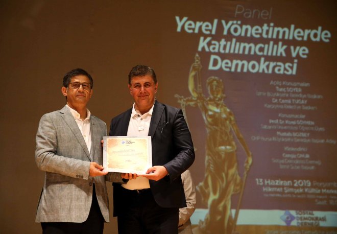 Başkan Soyer ve Tugay’ın açılış konuşmaları ile başlayan panele Sabancı Üniversitesi Öğretim Üyesi Prof. Dr. Korel Göymen ve Cumhuriyet Halk Partisi’nin 31 Mart yerel seçimlerinde Bursa Büyükşehir Belediye Başkan Adayı olan Mustafa Bozbey de katıldı. Sosyal Demokrasi Derneği İzmir Şube Başkanı Cengiz Onur ise panelde yönlendirici olarak yer aldı. Onur tüm katılımcılara sosyal demokrasi vefa belgesi sunarken, organizasyona ev sahipliği yapan Başkan Tugay da katkılarından dolayı konuklara teşekkür belgeleri takdim etti.