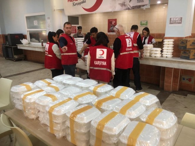 Türk Kızılay’ı Karşıyaka Şubesi’nin Karşıyaka Şehit Prof. İlhan Varank Anadolu Lisesi yemekhanesinde kurduğu iftar sofrasında Karşıyaka’daki kurum yöneticileri, 400’e yakın Karşıyakalı bir araya geldi. İftar sofrasına gelemeyen 600 kişiye de iftarlıkları evlerine servis edildi.
