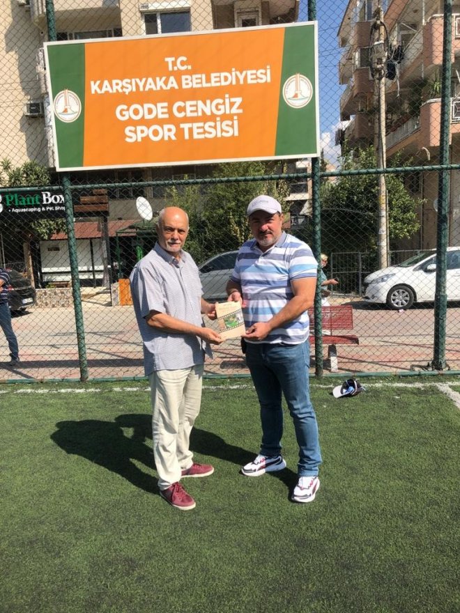 Bostanlıspor alt yapısında oynayan oğlu Kuzey’i U14 maçında izlemeye gelen, Bostanlıspor futbol alt yapısına her türlü desteği sağlayan Türk Kızılay Karşıyaka Şube Başkanı Kamil Karadeniz’e, Bostanlıspor Başkanı Avni Erboy son kitabı olan “Mutluluk Üçgeni”ni hediye etti.