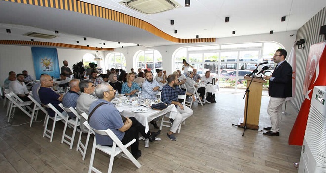 Toplantıda sözlerine Dr. Cemil Tugay’ın 2 bloktan oluşan Karşıyaka Sosyal Yaşam Kompleksinin satış kararını aldırmakla göreve başladığını ifade ederek başlayan AK Parti İlçe Başkanı belediyenin malları elinden çıkarma telaşına girdiğini söyledi.