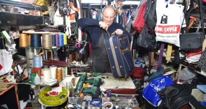 Ankara Pasajında mütevazı küçük dükkânlarında çanta ve bavul tamiratı yaparak geçimlerini sağlayan Gönülal ailesi bu meslekleri deden toruna geliyor.