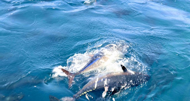 İzmir Karaburun açıklarında bulunan 6 orkinos çiftliğinden birinde, Uluslararası sulardan avlanarak getirilen orkinosların besiye alınarak yetiştirilmek üzere kafeslere aktarma işlemine İzmir İl Tarım ve Orman Müdürü Mustafa Şahin katıldı. İl Müdürü Şahin’e, Balıkçılık ve Su Ürünleri Şube Müdürü Bülent Canatan, Koordinasyon ve Tarımsal Veriler Şube Müdürü B. Kürşad Sevim ve ilgili teknik personel eşlik etti.