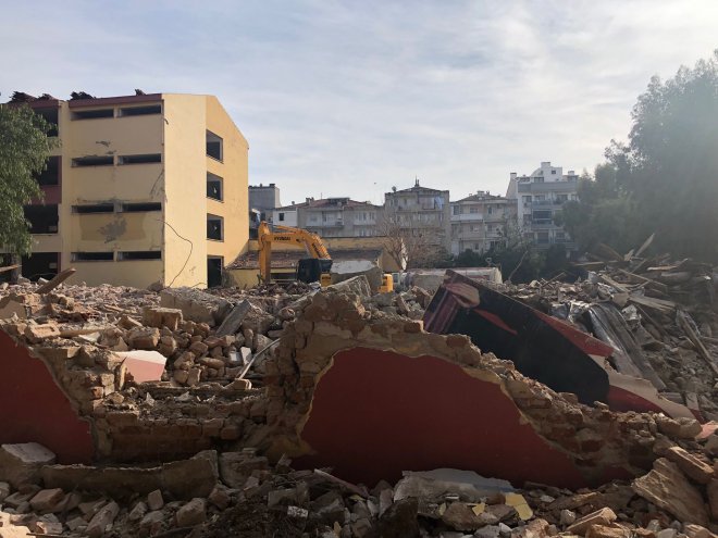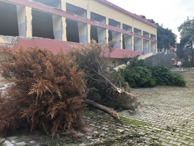 Depremde gördüğü zarar nedeniyle Karşıyaka Lisesi'nin yıkımına başlandı. 1959 yılında yapılan ek bina ve spor salonu da yıkılırken yeni projede spor salonu olmayacağı öğrenildi. Yıkım esnasında ağaçların da sökülmesine vatandaşlar tepki gösterdi.