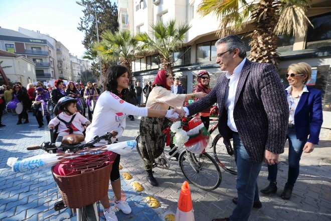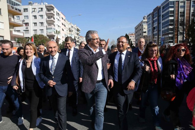 Karşıyaka’da düzenlenen 8 Mart Dünya Emekçi Kadınlar Günü etkinlikleri Zübeyde Hanım’ın anıt mezarında başladı. Karşıyaka Belediye Başkanı Hüseyin Mutlu Akpınar, CHP İlçe Başkanı Uğur Yıldırım, CHP Karşıyaka Kadın Kolları Başkanı Buket Fatoş Erol, Büyükşehir Belediye Başkan Adayı Tunç Soyer ve Karşıyaka Belediye Başkan Adayı Cemil Tugay da eşleri ile birlikte törene katıldı. CHP Karşıyaka Kadın Kolları Başkanlığı ve sivil toplum kuruluşlarınca organize edilen etkinliklere bine yakın kişi katıldı.