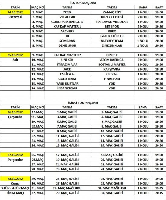 Genellikle masterler futbol takımlarında oynayan futbolculardan oluşan 30 Takımın katılacağı turnuva 28 Ekim akşamı final maçları ile sona erecek ve aynı gece ödüller dağıtılacak.