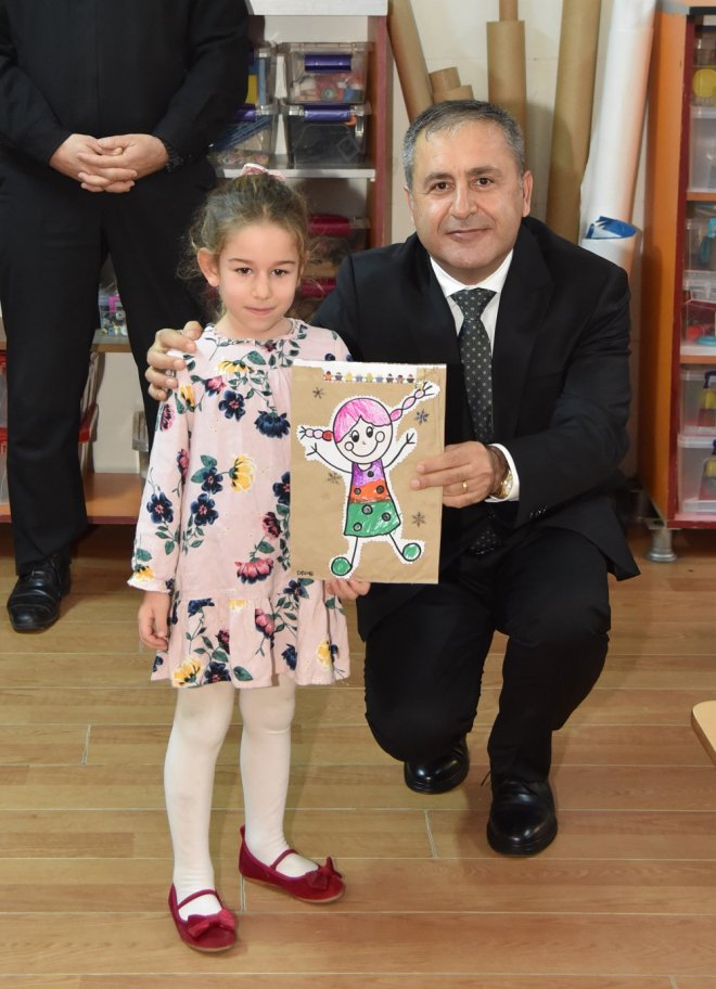 Etkinliğin sonunda Kaymakam Demir ve beraberindekiler sınıflara gidip öğrencilere karneleri ve hediyelerini verdi.